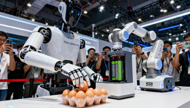 • 群體智能升級:北京人形機器人創新中心的 “慧思開物 2.0” 平臺實現跨企業機器人協同,宇樹科技 G2 機器人憑借新型觸覺傳感器,可完成芯片級裝配任務;